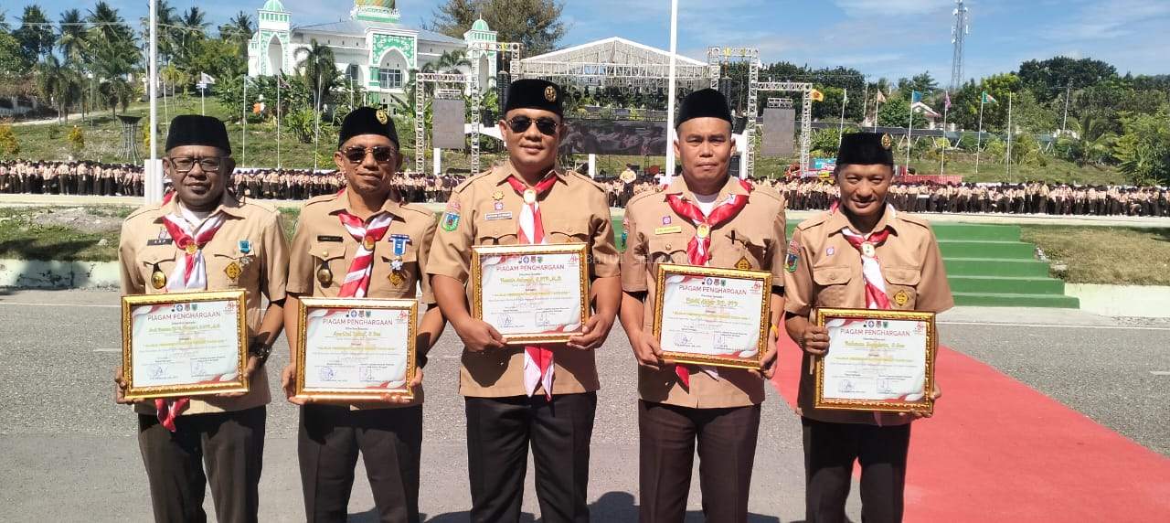 BATSEL, PIP - Camat Batui Selatan, Faidil Akbar Dg. Pasau STP, menerima penghargaan sebagai Mabiran Terbaik Tahun 2025 dari Kwartir Cabang Banggai, (14/8). Penghargaan ini diberikan dalam sebuah acara yang berlangsung di Lapangan Mirqan Halimun, di mana empat camat lainnya turut menerima penghargaan serupa atas dedikasi mereka dalam mengembangkan gerakan pramuka di wilayah masing-masing.